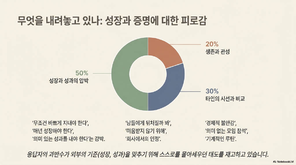 방향 없는 성실함, 비교, 의무감으로 이어지는 관계, 쉴 때 느끼는 죄책감.