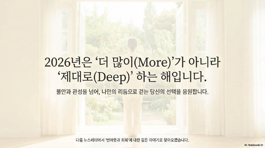 2026년은 무언가를 더 추가하는 해가 아니라, 내 삶에 맞는 깊이를 선택하는 해여도 충분합니다.