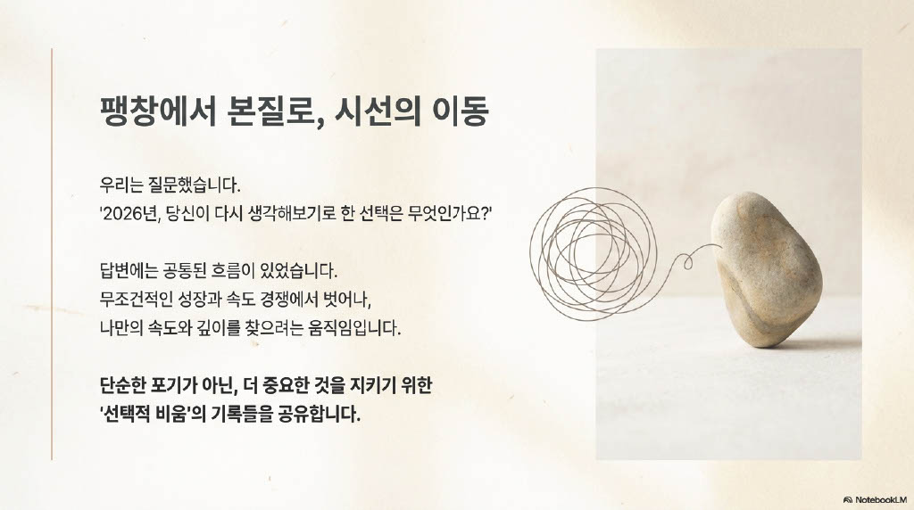 질문은 단순어요. “2026년, 다시 생각해보기로 한 선택은 무엇인가요?”