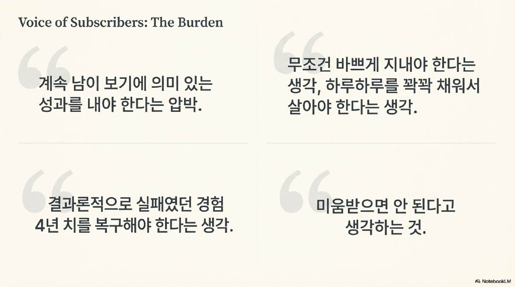 “성장을 싫어하게 된 게 아니라, 증명해야만 안심되는 상태에 지쳤다.”