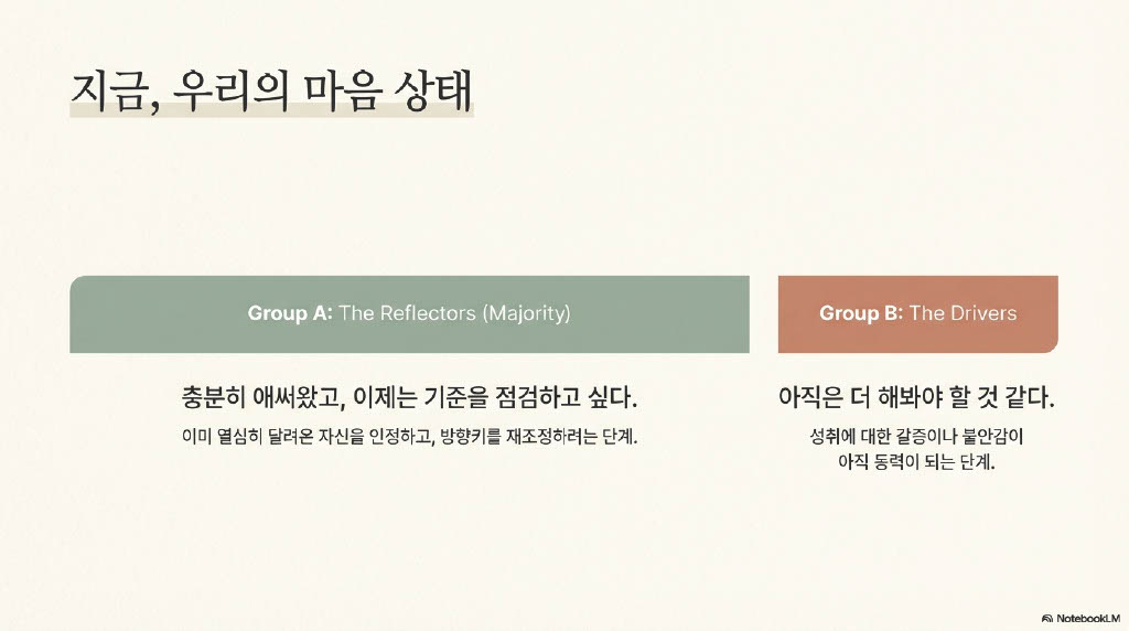 더 높은 목표보다 덜 흔들리는 상태를 원하고 있다는 점이 인상적이었습니다.