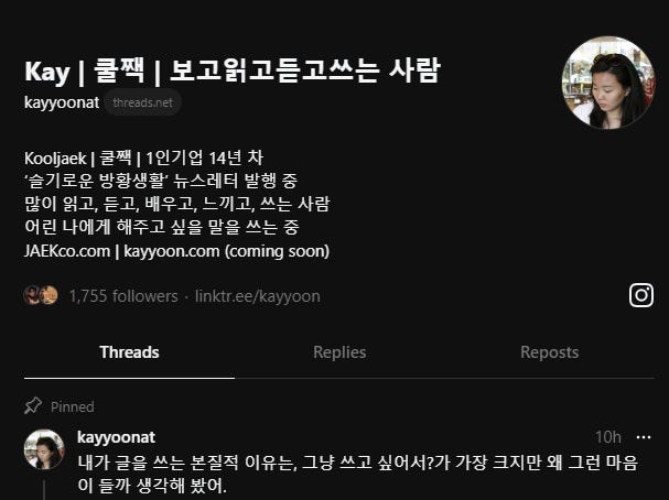 ๊ทธ๋๋ ์์ฌ์ ๋ด์ด์ ๊ธ์ ์ฐ๋ ๊ฐ์ฅ ํฐ ์ด์ ๋ โ๋จ์ํ ๊ธ์ ์ฐ๊ณ ์ถ๋คโ๋ ์๊ฐ์ด ๋ค์ด์๊ฐ ๊ฐ์ฅ ํด ๊ฑฐ์. ์ ๊ฐ ๊ธ์ ์ฐ๊ฒ ๋ ๋ณธ์ง์ ์ด์ ๋๊น์.