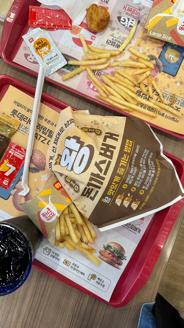 ์์ง ๋งฅ๋๋ ๋๋ ๋ชป ๋ดค๋๋ฐ, ๋๋ค๋ง๋ค ๋กฏ๋ฐ๋ฆฌ์๊ฐ ์ฐธ ๋ง์์. ๊ทธ๋ฆฌ๊ณ ์ฌ๊ธฐ๋ ์์นจ๋ถํฐ ๊ฐ์ํ๊น์ ํ์์ ๋๋ฌด ์ข์์. ๋งฅ๋๋ ๋๋ ์์นจ์ ํด์๋ธ๋ผ์ด์ด์์์. ์ผ๋จ ์นํจ ๋๊ฒ๊ณผ ๊ฐ์ํ๊น์ผ๋ก ์ธ์์ ๋ค ์ปค๋ฒํ๊ณ ์์ด์, ์ ๊ฐ ์์ง ๊ทธ ์ธ์ ๊ฒ์ ๋ชป ๋จน์ด๋ดค์ด์.