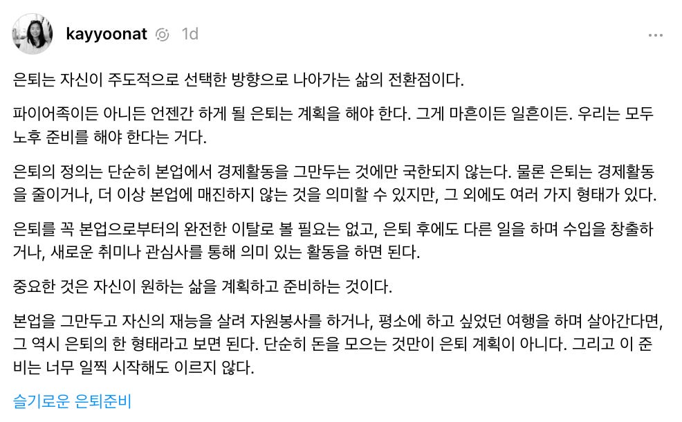 ์ฌ์ ์ ์๋ฏธ์ ์ํด๋, ๋ ์ด์ ์ผ์ ํ์ง ์์๋ ์ํ์ ์ ์งํ ์ ์๋ ์ํ๋ฅผ ์๋ฏธํด์. ๋ฌผ๋ก ํต์์ ์ผ๋ก ์๊ฐํ๋ ์ํด๋ ๋์ด์ ๊ด๋ จ๋ ๊ฒฝ์ฐ๊ฐ ๋ ๋ง๊ฒ ๋ค์. ์ ๋ ํด์ง์ ํ๊ฒ ๋๋ ๋์ด, 65์ธ๋ 70์ธ๋ โฆ ๋๊ตฌ๋ ๊ทธ ๋์ด์ ์ด๋ฅธ์ด ๋๊ฒ ์ฃ . ํ์ง๋ง ๊ทธ ๋์ด๊ฐ ๋๋ค๊ณ ์๋์ ์ผ๋ก ๋ ธ๋ ์ด ์ค๋น๋๋ ๊ฑด ์๋์์์.
