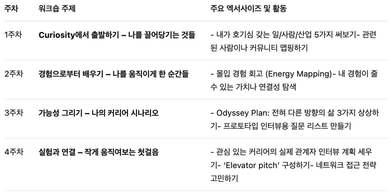 그리고 그중 하나를 작게 실험해 보는 방법도 함께 고민하죠. 이런 과정들을 통해 막연하던 커리어나 삶의 방향이 조금은 구체적인 ‘형태’를 갖추기 시작해요.