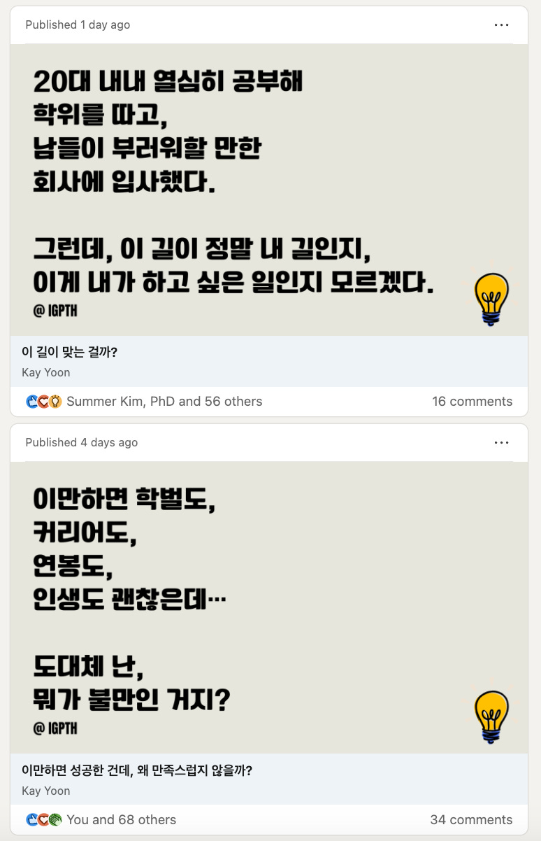 ** ํน์ ์ ๊ฐ 30๋ ์ปค๋ฆฌ์ด๋ฅผ ์ด๋ป๊ฒ ์ ๋ฆฌํ๊ณ ์ปค๋ฆฌ์ด์ ์ด๋ค ์ฑ์ฐฐ์ ํ๋์ง ๊ถ๊ธํ์๋ค๋ฉด, ๋ค์ ๋ด์ค๋ ํฐ์์ ๋ค๋ค๋ณด๋๋ก ํ ๊ฒ์.